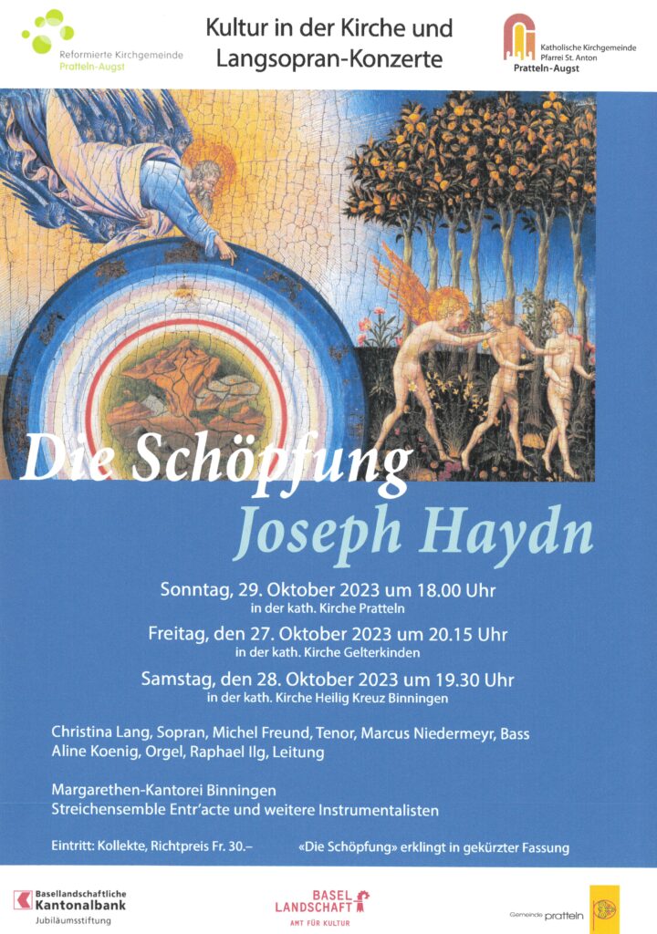 Konzert – «Die Schöpfung» von Joseph Haydn Datum: Sonntag, 29. Oktober 2023, 18.00 Uhr, Ort: Kath. Kirche, Pratteln