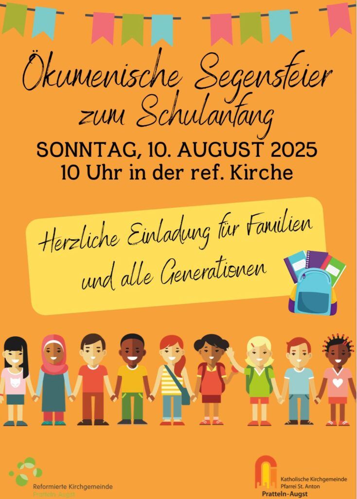 Am Sonntag, 10. August, um 10 Uhr feiern wir in der reformierten Kirche eine ökumenische Segensfeier zum Kindergarten- und Schulanfang.