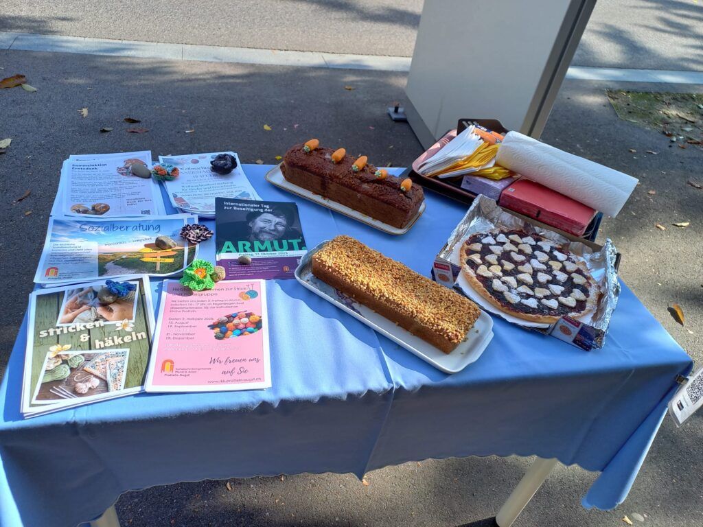 Am Internationalen Tag der Armut, am 17. Oktober 2025, haben wir Kuchen und selbstgemachte Strickwaren vor dem Coop in Pratteln verkauft.