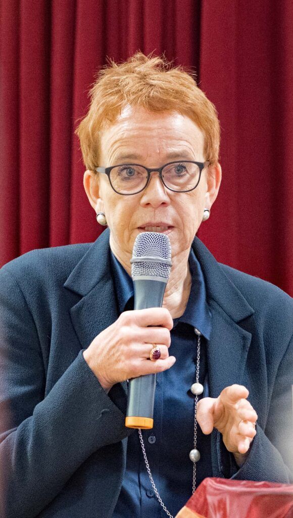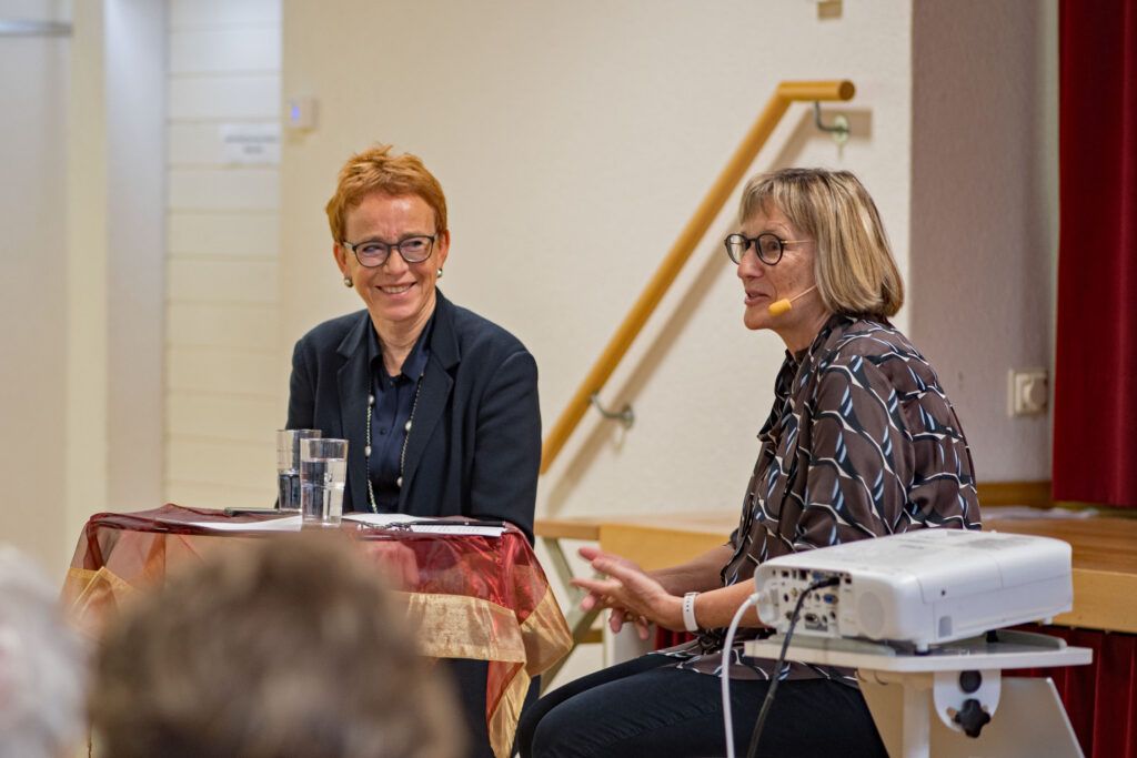 Im letzten Teil sprach sie über Persönliches. Es war ihr immer wichtig, finanziell eigenständig zu sein. Familie und Job unter einen Hut zu bringen, war nicht immer einfach. Altersarmut bei Frauen ist besonders hoch, darum rät sie jungen Frauen, auch mit Kindern möglichst weiterzuarbeiten. Als Ständerätin liest und sitzt man viel, daher ist ihr Bewegung wichtig. Sie geht auch gerne mal ins Kino/Theater oder verbringt einfach Zeit mit der Familie.